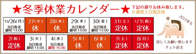 12/31-1/4は冬季休業のため発送をお休みいたします。