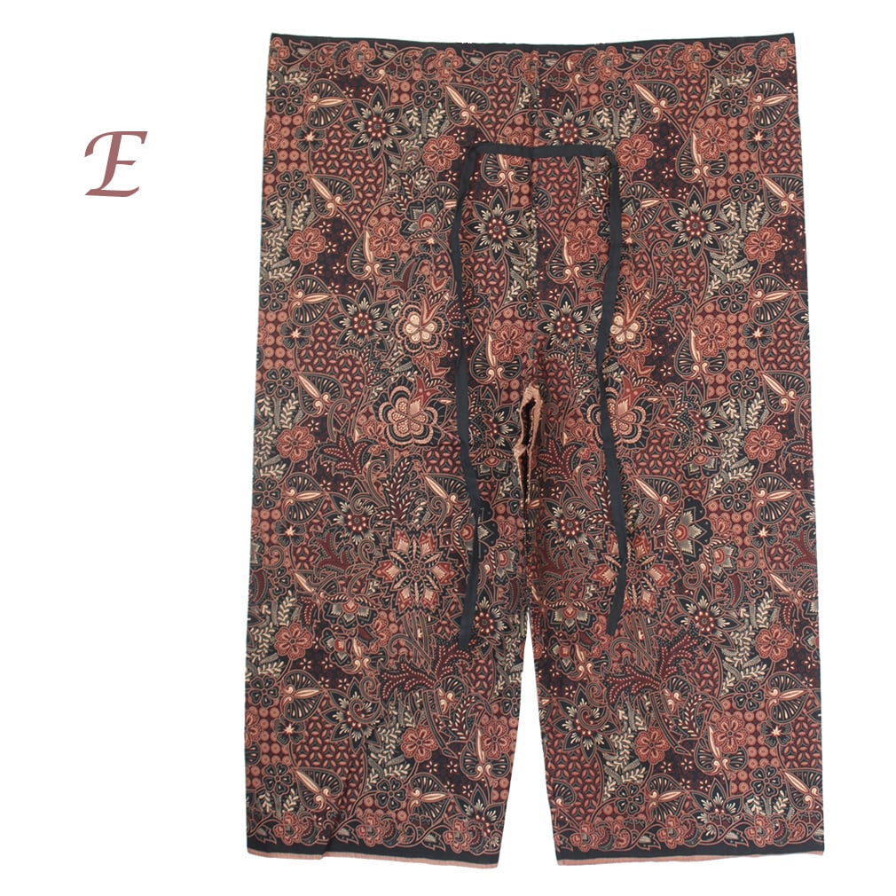 タイはチェンマイから、薄手コットンのプリント生地タイパンツ。バリの伝統布バティックの柄をプリントで再現したもの。5タイプ。