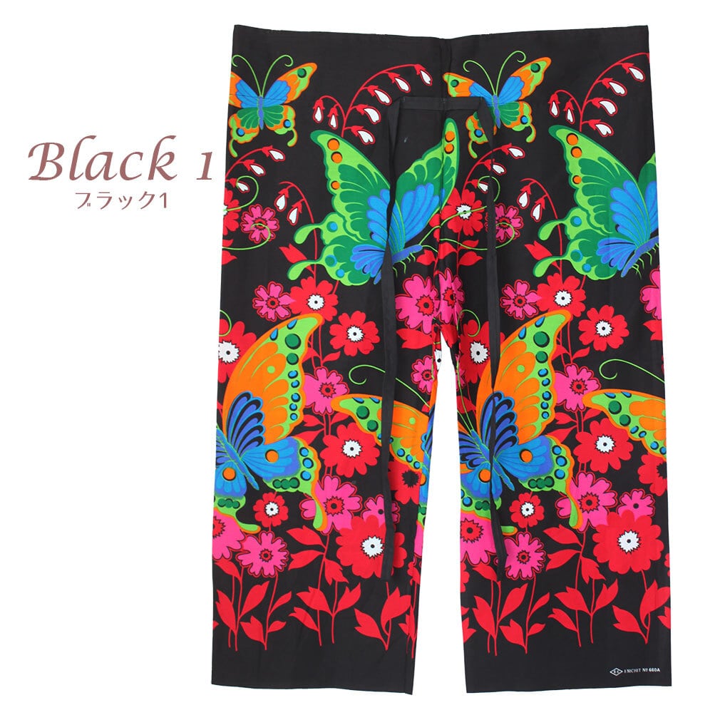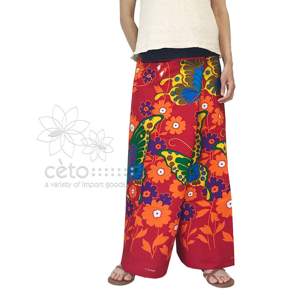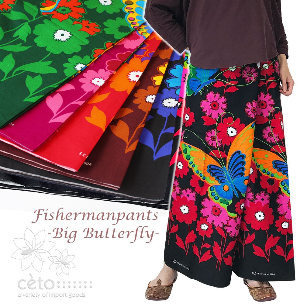 タイはチェンマイから、薄手コットンのプリント生地タイパンツ。大きな花柄と蝶々が目を惹きます。6カラー。