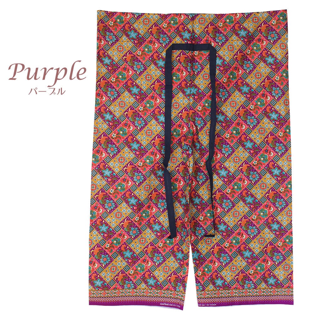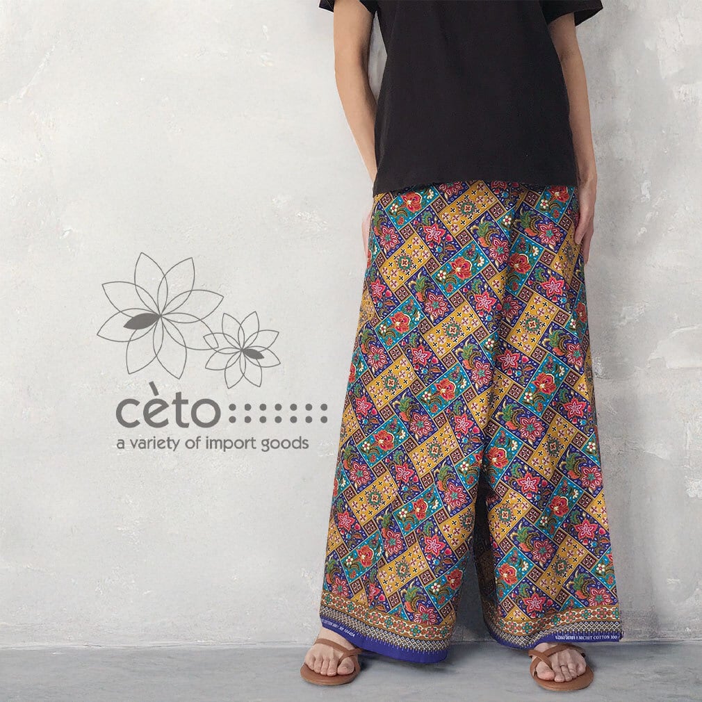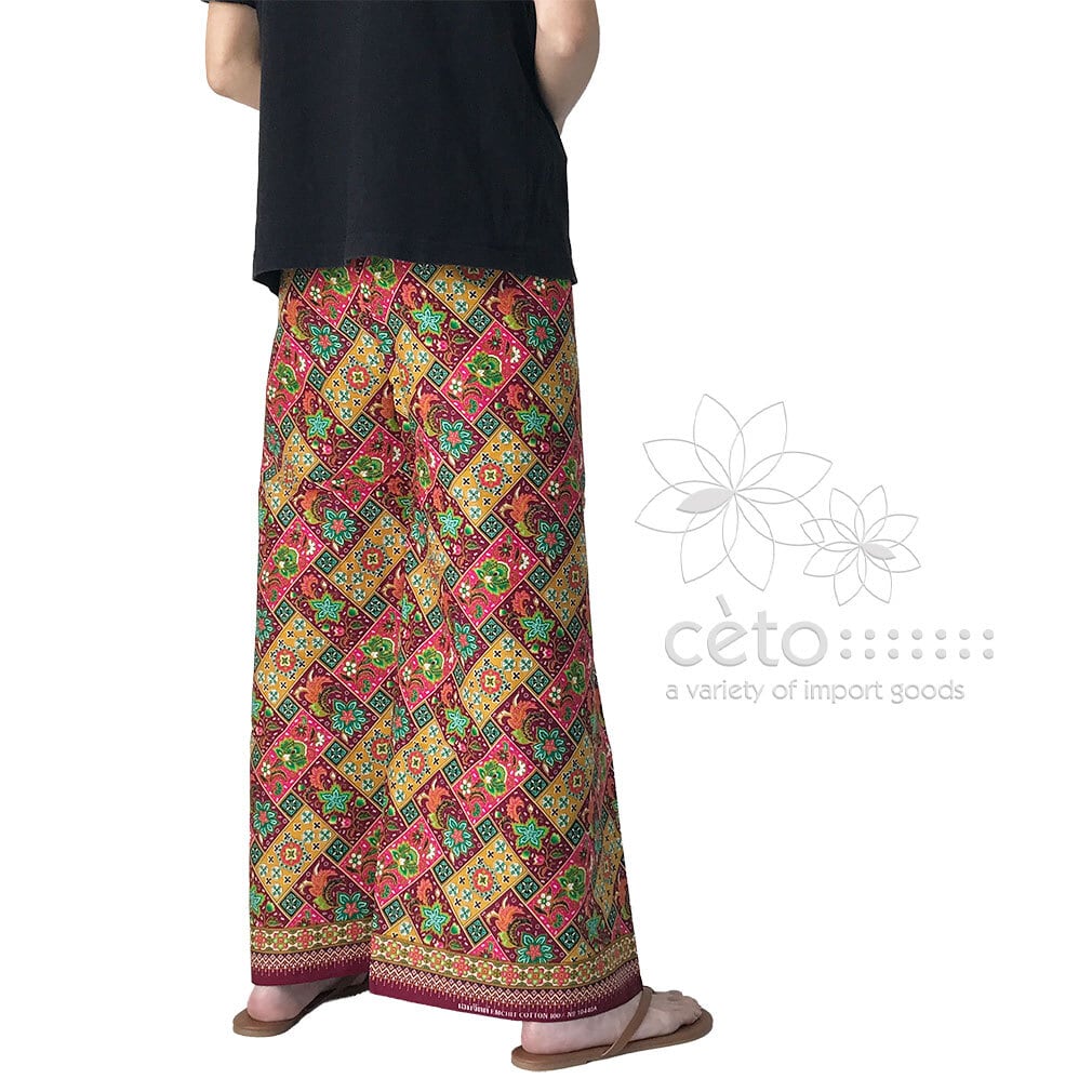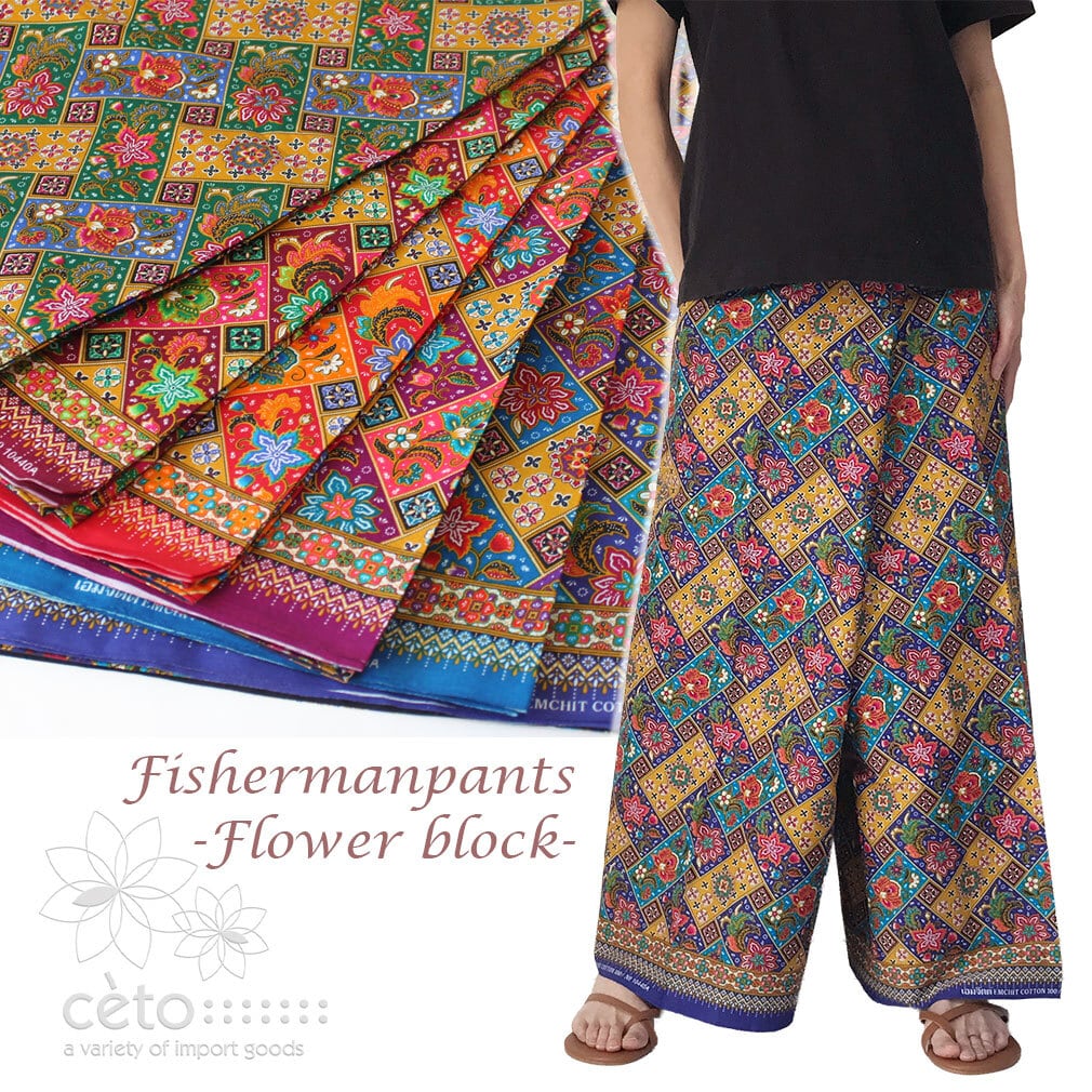 タイはチェンマイから、薄手コットンのプリント生地タイパンツ。フラワーブロック柄6カラー展開。