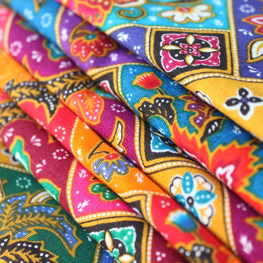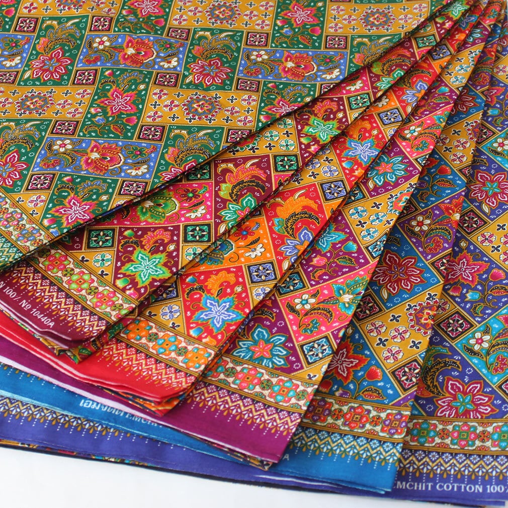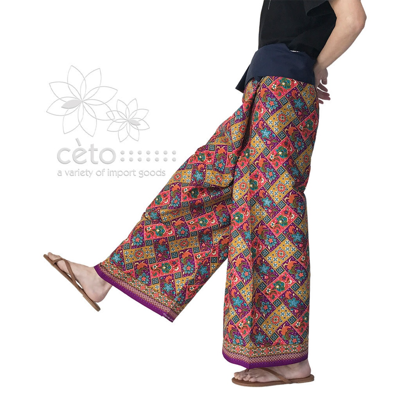 タイはチェンマイから、薄手コットンのプリント生地タイパンツ。フラワーブロック柄6カラー展開。