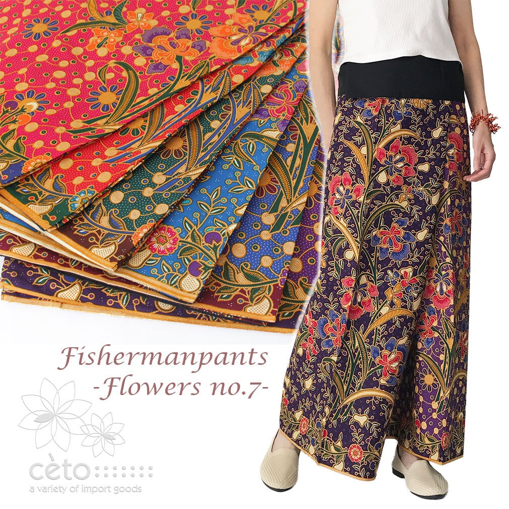 タイパンツ オリエンタルフラワー 6カラー リゾパン No.7 ロング丈【メール便送料無料】