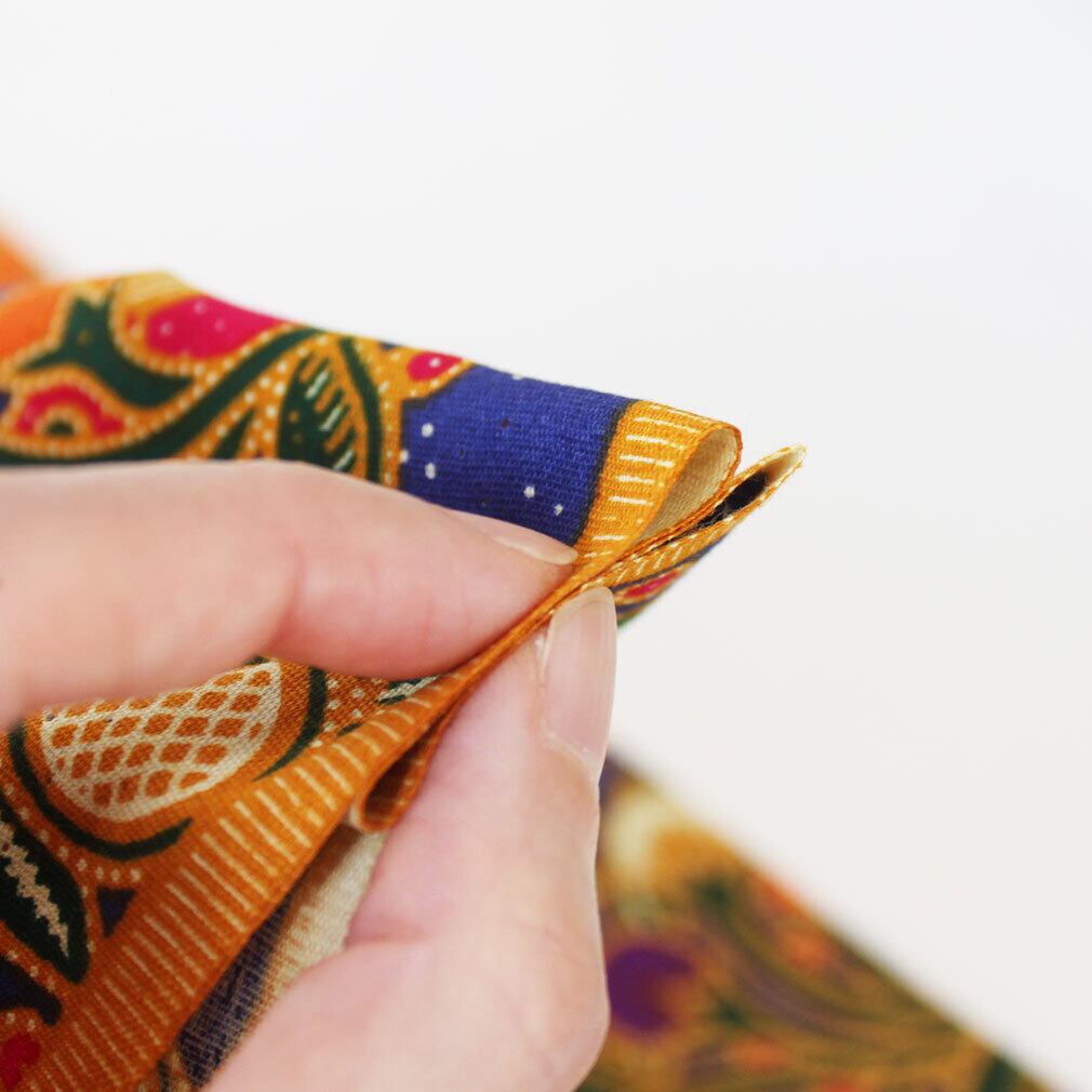 ※裾は生地の端をそのまま使用しており、縫われておりませんが基本ほつれることはございませんのでご安心ください。