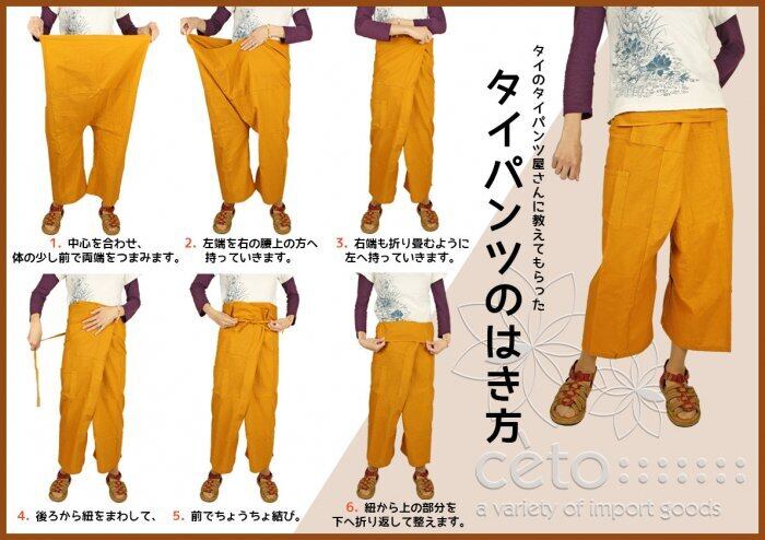 ■ サイズ:約幅70cm・長さ110cm・股下55cm・ヒモの付根から裾まで95cm・裾幅32cm(平置の状態で採寸。)