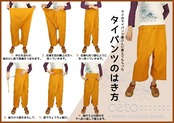 上の折り返しに柄が入ったシンプルタイパンツのショートタイプ。他のタイパンツと比べて幅がやや小さめでレディースに人気です。さらりとした目の細かいコットン生地です。