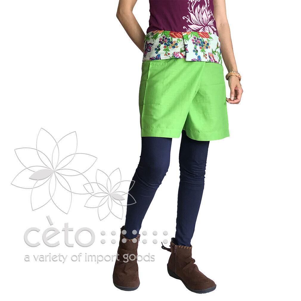 タイパンツ シンプル折返しプリント ショート丈(ライトグリーン2)【メール便送料無料】