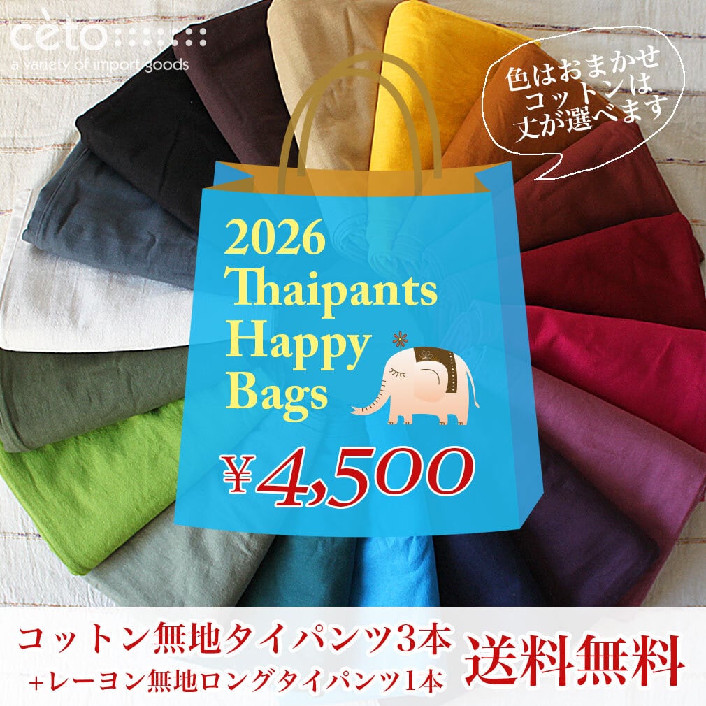 【〜1/7期間・数量限定】タイパンツ 福袋 4,500円 4本入り 2026 タイパンツハッピーバッグ エスニック アジアンファッション(コットン無地3本・レーヨン無地1本)