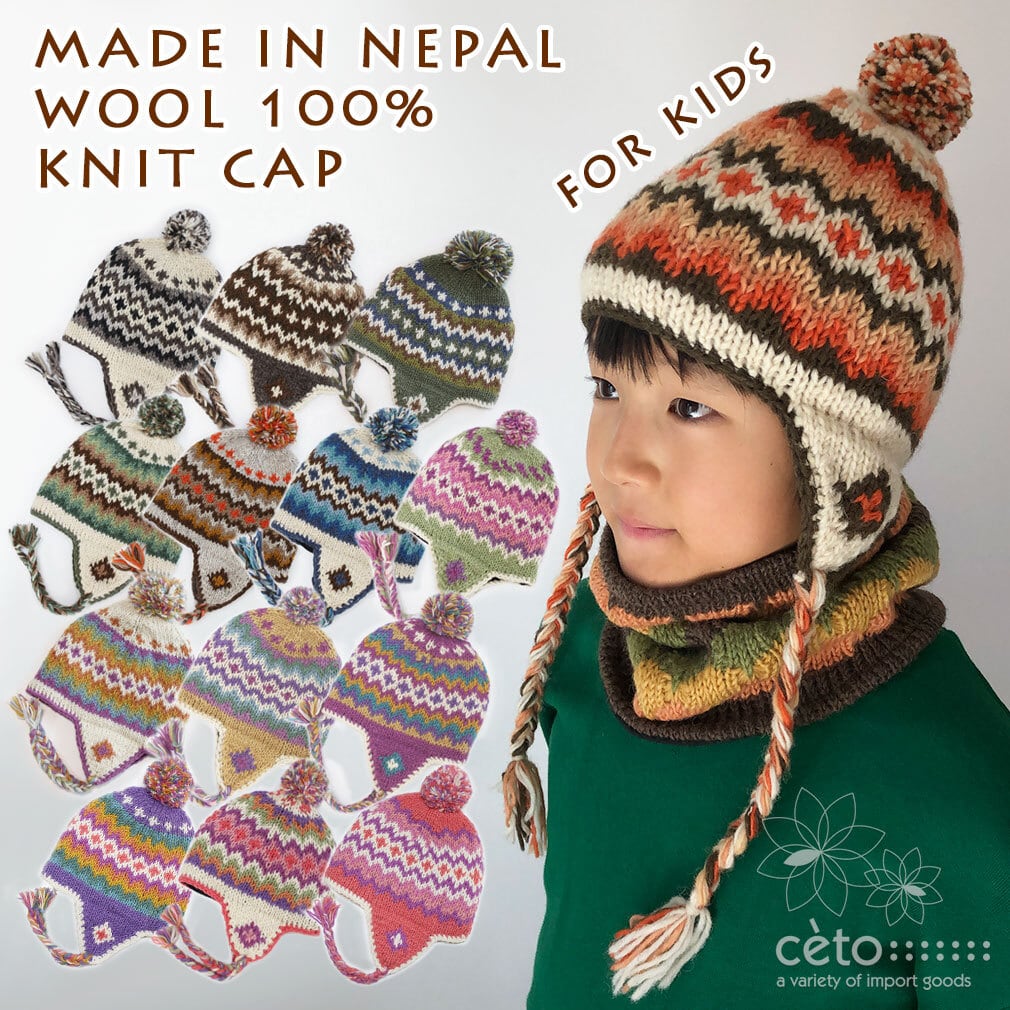 ネパールの手編みニットキャップ。キッズユニセックスカラー14タイプ。