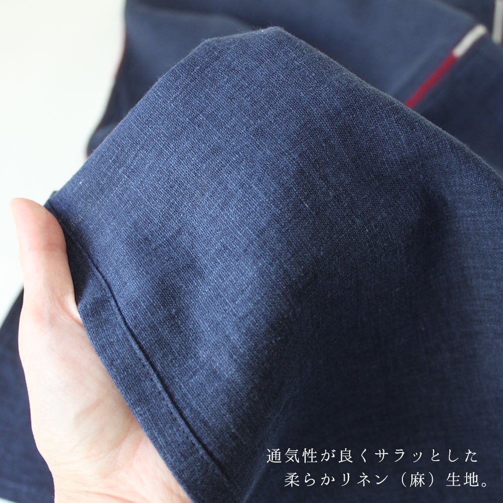 通気性の良いサラッと柔らかなリネンのネイビー生地。